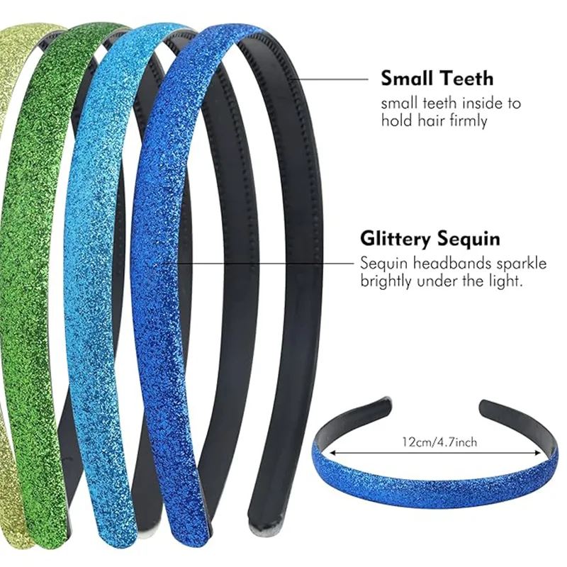 Hoogwaardige materialen: glitterfestiviteiten aankleden, kunststof hoofdbanden zijn gemaakt van duurzaam hoogwaardig kunststof. In tegenstelling tot andere inferieure plastic producten hebben onze hoofdbanden geen onaangename geur. Draag ze alstublieft met vertrouwen. Het gebruik van hoogwaardige materialen kan ervoor zorgen dat deze haarbanden duurzaam zijn en langer meegaan.