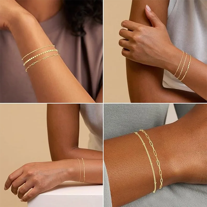 Geschikt voor de gevoelige huid - 100% zal uw polsen niet groen maken. Gouden tienermeisjesarmbanden zijn gemaakt van hoogwaardige materialen. De 14K gouden coating is duurzaam en zorgt ervoor dat er geen kleurverandering optreedt. Het is loodvrij, nikkelvrij en niet-allergeen, vriendelijk voor de gevoelige huid.