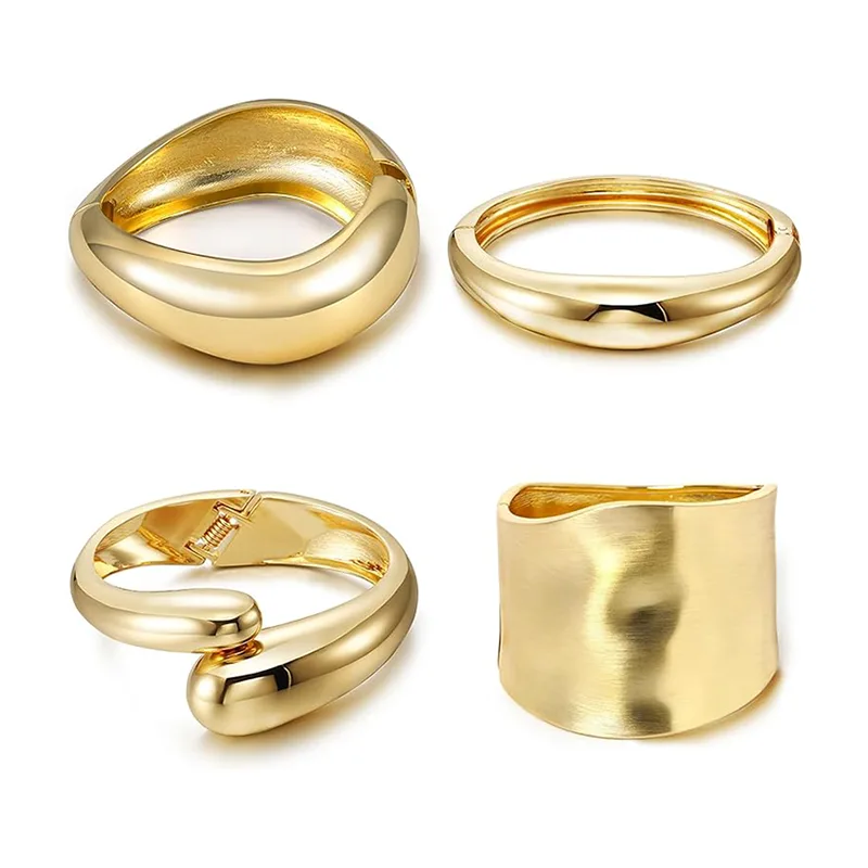 De dagelijkse legeringsarmband voor dames is verkrijgbaar in vier eenvoudige en stevige stijlen: de modieuze gouden druppelvormige armband, de brede armband, de stoere armband en de gouden onregelmatige armband zijn allemaal verkrijgbaar en voldoen volledig aan uw verschillende behoeften.