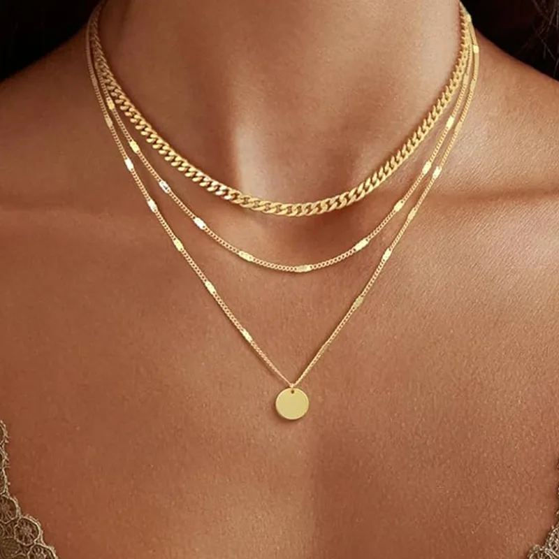 De Women gold plated damesmode ketting bevat drie verschillende designs kettingen, namelijk de Cubaanse ketting, de puntige ketting en de muntketting, die apart of gestapeld gedragen kunnen worden. De korte Cubaanse ketting van 13,8 inch (5 mm breed) is retro en voortreffelijk, de middelgrote puntige hangende ketting van 15 inch is eenvoudig en netjes, en de lange muntketting van 17 inch is veelzijdig en elegant. De drie stijlen vullen elkaar aan en creëren een sterk gevoel van gelaagdheid wanneer ze worden gestapeld, en elk heeft zijn eigen charme wanneer het alleen wordt gedragen.